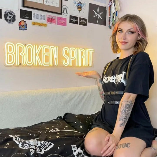 “Broken Spirit” Neon Sign – Bold Letter LED Neon Quote for Dark Aesthetic & Alternative Room Decor