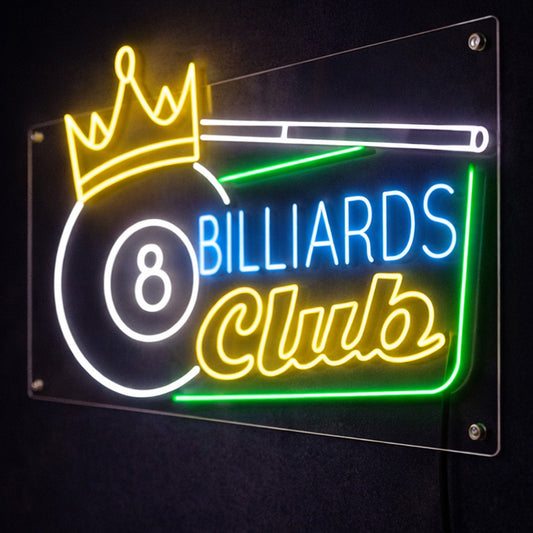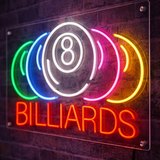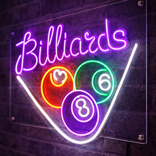 Billiards LED Neon Sign – Multicolor Pool Table Acrylic Wall Decor