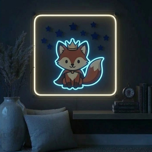 Cute Fox Neon Sign – Crown Fox LED Wall Decor for Bedroom & Nursery