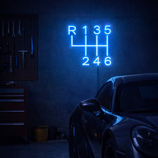 Manual Gear Shift Blue LED Neon Sign – R135 246 Neon Wall Light for Garage & Man Cave
