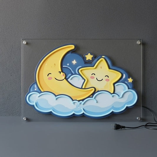 Moon & Star Neon Sign – Cute Cloud Night Light LED Wall Decor for Bedroom & Nursery