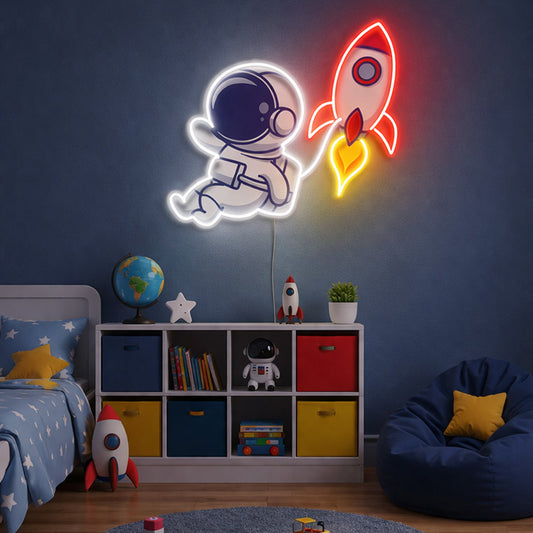 Neon Signs for Kids Room – Astronaut Rocket Decor