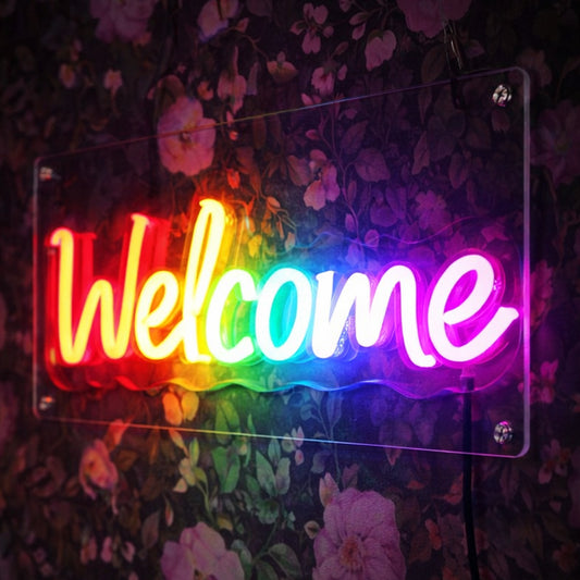 Rainbow “Welcome” LED Neon Sign – Colorful Acrylic Wall Decor Light