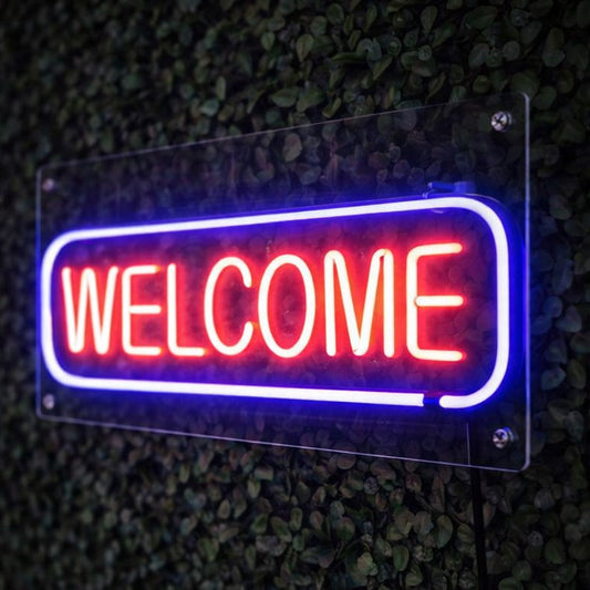 Red & Blue “Welcome” LED Neon Sign – Modern Acrylic Wall Light