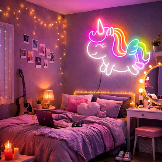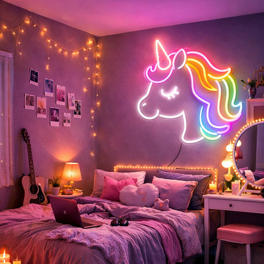 Unicorn Neon Sign – Cute Rainbow LED Wall Decor for Bedroom & Kids Room