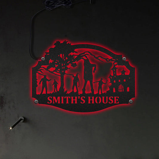 Zombie Rise Haunting House Personalized - Led Light Metal