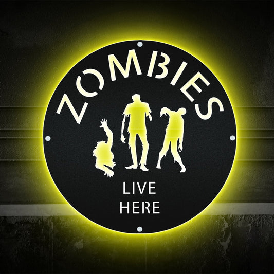 Zombies Live Here Halloween Day Scared - Led Light Metal