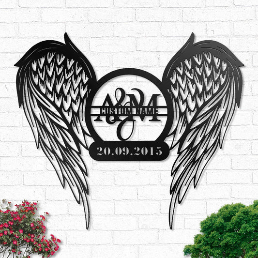 Angel Wings Couple Family Name Date Personalized - Led Light Metal