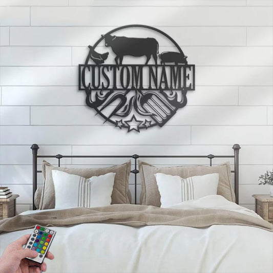 Personalized Barbecue Metal Wall Signs With RGB Led Light
