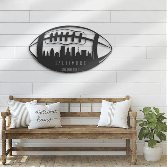 Personalized Baltimore Skyline American Football, Metal Wall Signs With RGB Led Light