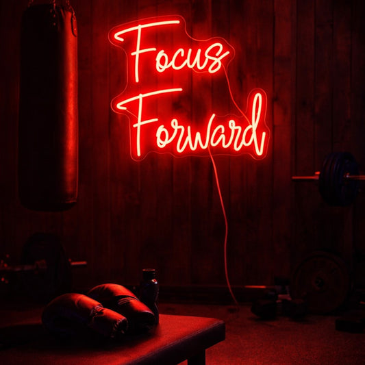 “Focus Forward” LED Neon Quote – Bold Red Motivational Wall Decor