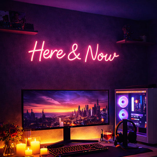 “Here & Now” LED Neon Quote – Pink Ambient Wall Decor