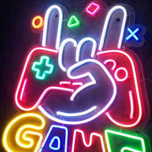 Game On Neon Wall Sign – Multicolor LED Gaming Controller Hand Gesture Sign for Gamer Room & Setup