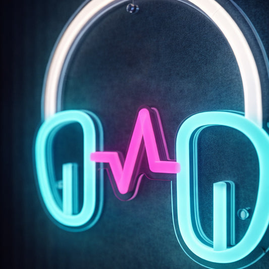 Neon Headphones with Heartbeat LED Sign – Music Studio & Gaming Room Wall Light