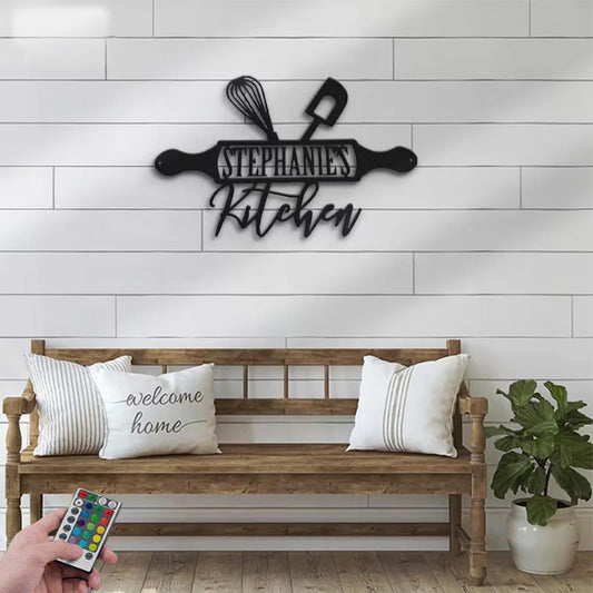 Personalized Kitchen Metal Wall Signs With RGB Led Light
