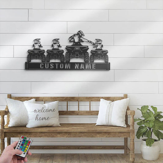 Custom Name Dirt Bike Name Sign Home Three Wheel, Metal Wall Signs With RGB Led Light