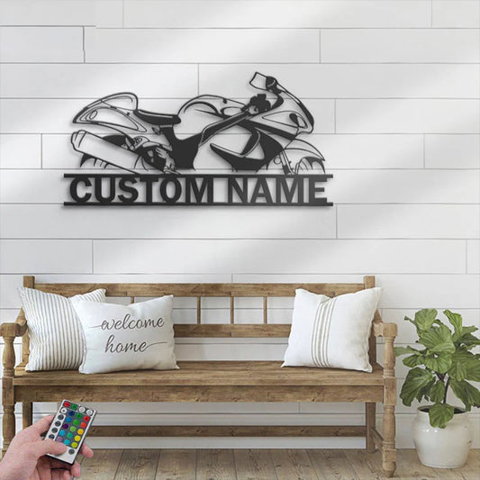Custom Name Dirt Bike Name Sign Home, Metal Wall Signs With RGB Led Light