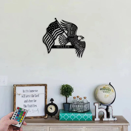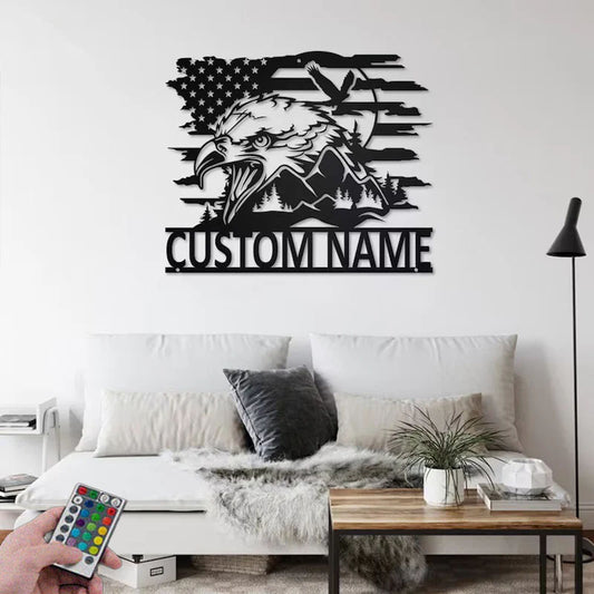 Custom Name Eagle Metal Sign Decor, Wall Hanging Decor, Metal Wall Signs With RGB Led Light