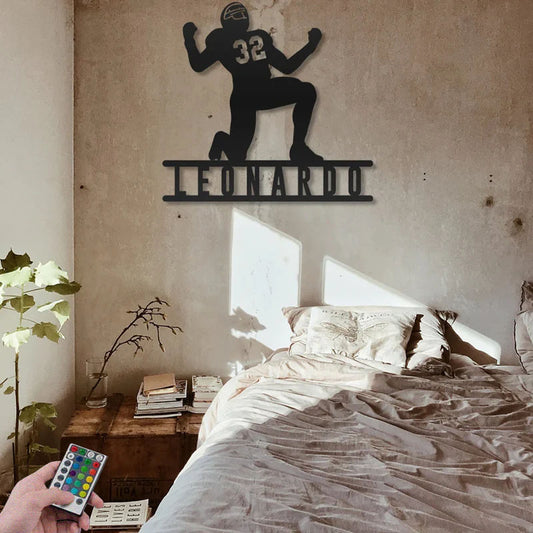 Custom Name Football Player Wall Decor, Metal Wall Signs With RGB Led Light