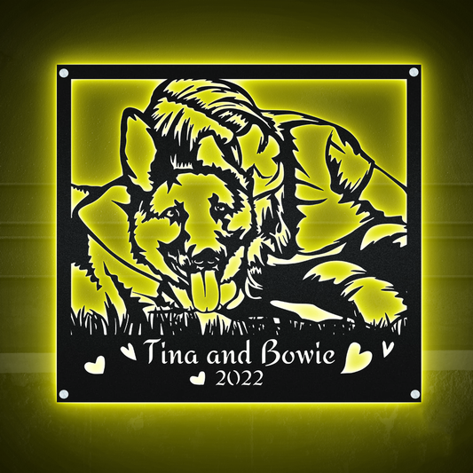German Shepherd With Girl Best Friend Personalized - Led Light Metal
