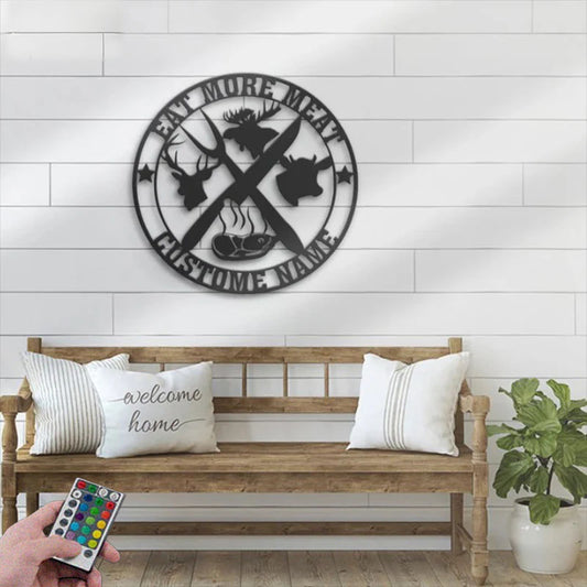 Personalized Cow Deer Moose Meat Shop Metal Wall Signs With RGB Led Light