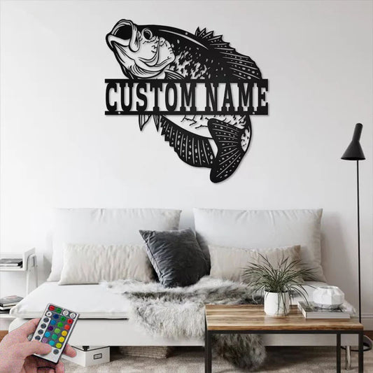 Personalized Crappie Fish Metal Wall Signs With RGB Led Light