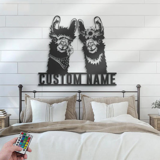 Personalized Cute Couple Alpaca Llama Love Metal Wall Signs With RGB Led Light