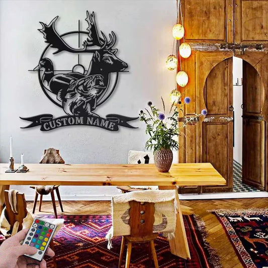Personalized Deer Duck Hunting, Metal Wall Signs With RGB Led Light